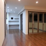 同じ家に住みながらもキッチンは別々にしてあるので気兼ねなく暮らすことができる。必要な時には助け合い、それぞれの空間も大事にできる家です。壁材に家と空気を美しくするエコカラットを使用。季節を問わず快適に過ごすことができます。